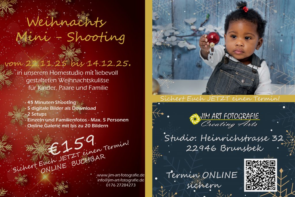 Ab sofort könnt ihr euren Termin für das Mini-Weihnachtsshooting 2025 sichern.